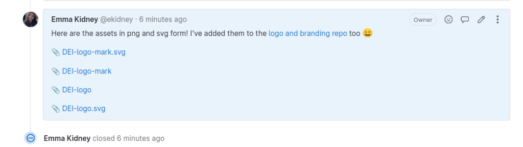 All that’s left to do now is upload the final assets to the ticket and to the team repository if necessary. I like to export the logo in full and as a logo mark (just the icon) in both PNG and SVG format. It’s also good practice to name the files accurately. Once all is uploaded, close the ticket, and you’re done!