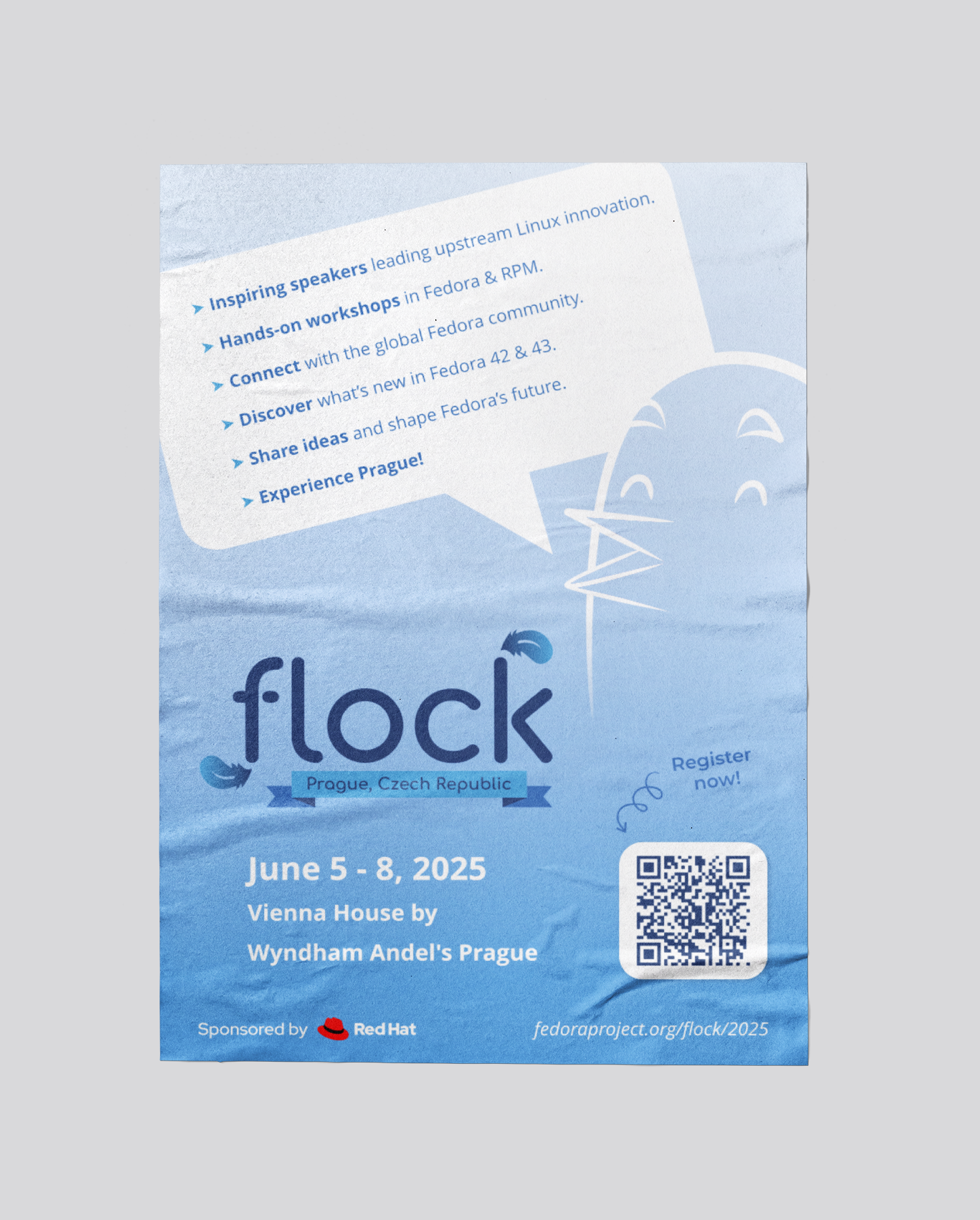 The Fedora Design team led the branding for Flock 2025, combining elements of the conference’s location and culture with Fedora’s established brand identity.