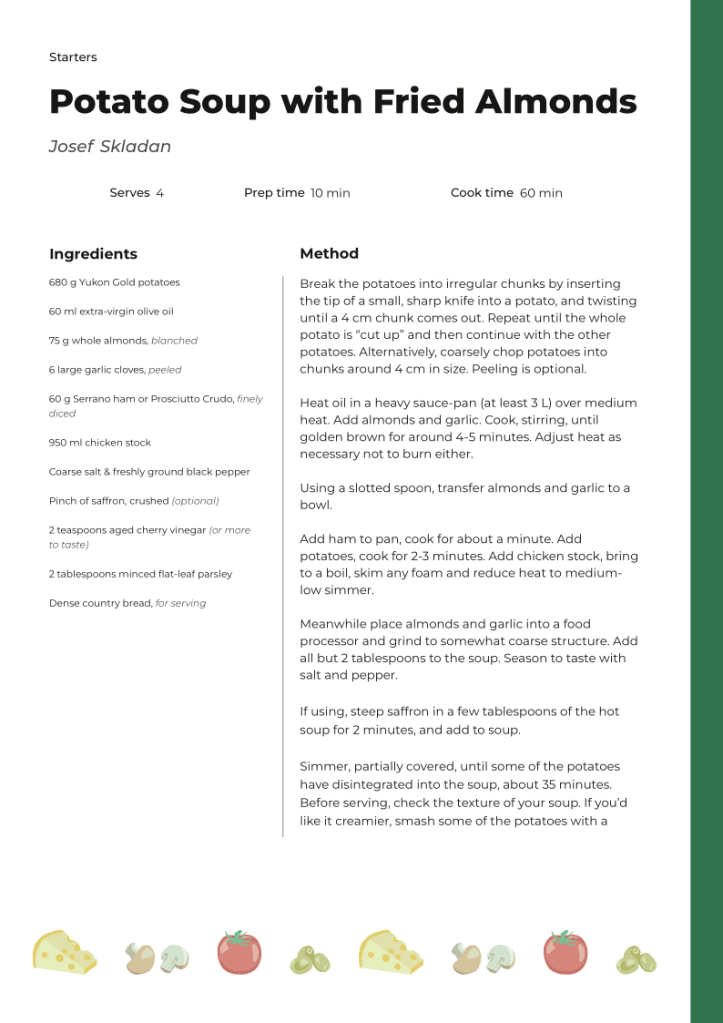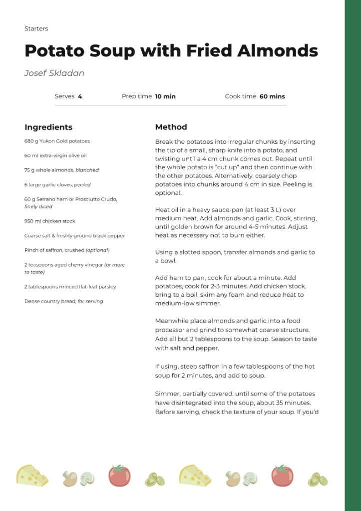 I am currently working on a cookbook design for my team in work. The team were encouraged to send recipes to be compiled into a cookbook as an end of year gift. I have been tasked with designing the internal recipe pages.